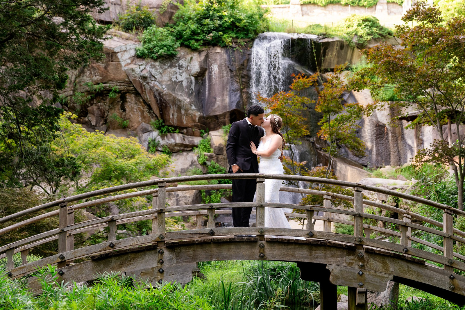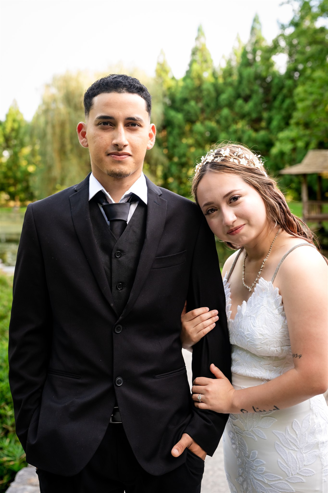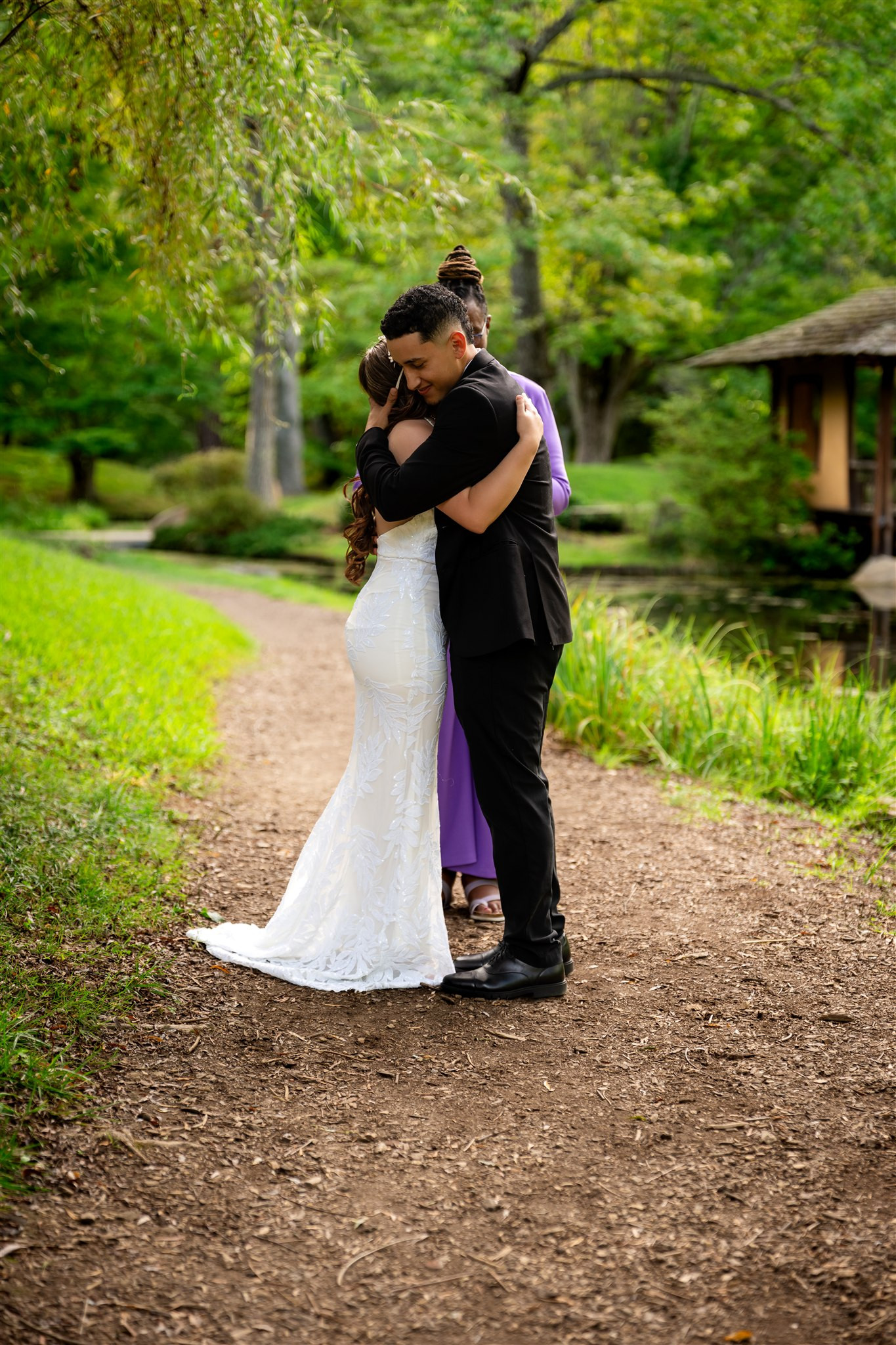 The Japanese Garden is known for its magnificent waterfall — and it really is. But if you held a ceremony there, you’d have an audience. They chose a quieter path overlooking a pond, where they could share vows without distraction.