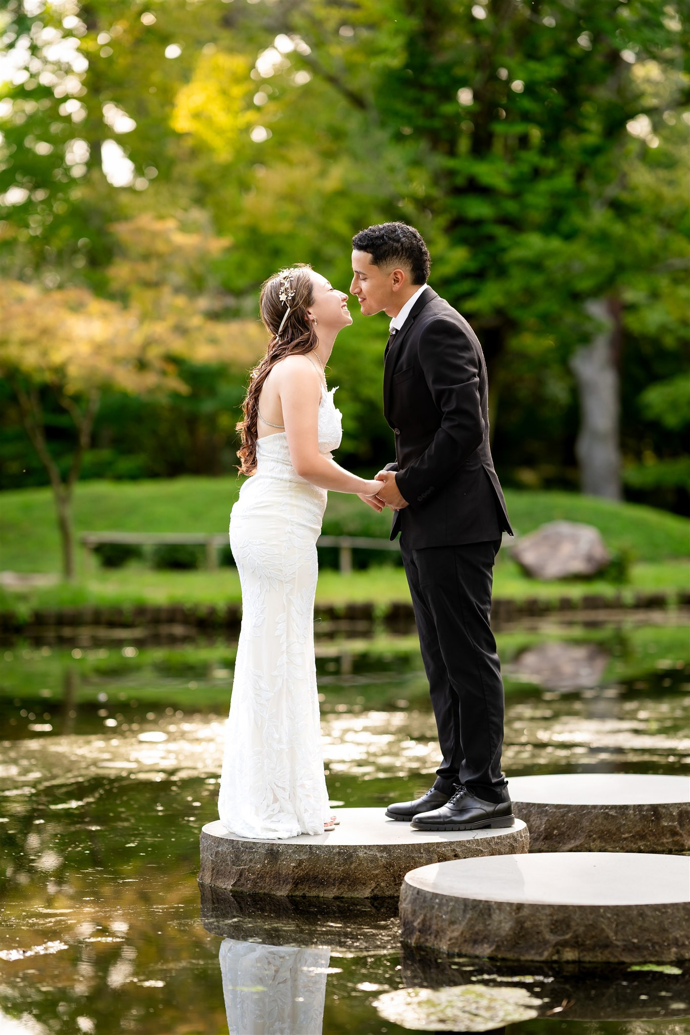 Tucked away below the main grounds, the Japanese Garden at Maymont is a quieter, more intimate setting. Waterfalls, stone bridges, and layered greenery make it feel like its own world. It turned out to be the perfect venue for a quick, private elopement.